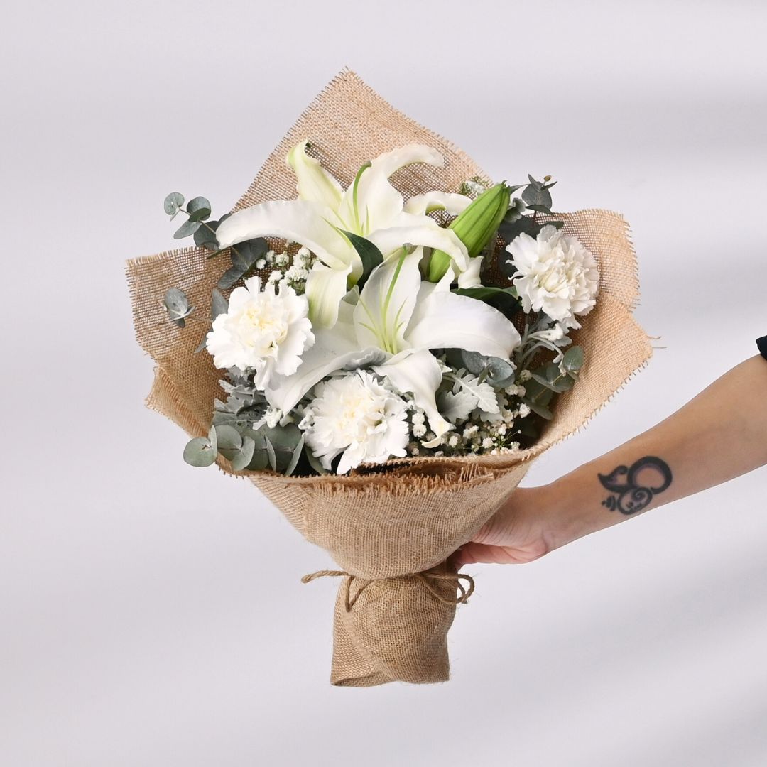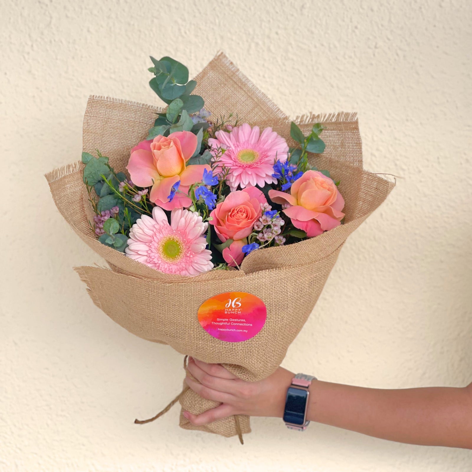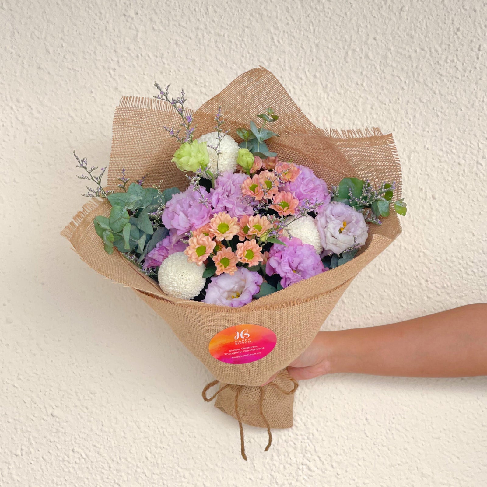I ordered the purple carnations bouquet, it was perfect for the occasion and I was very touched by the care put into the flower arrangement and delivery service too. Thank you and I would definitely order again from Happy Bunch in the future